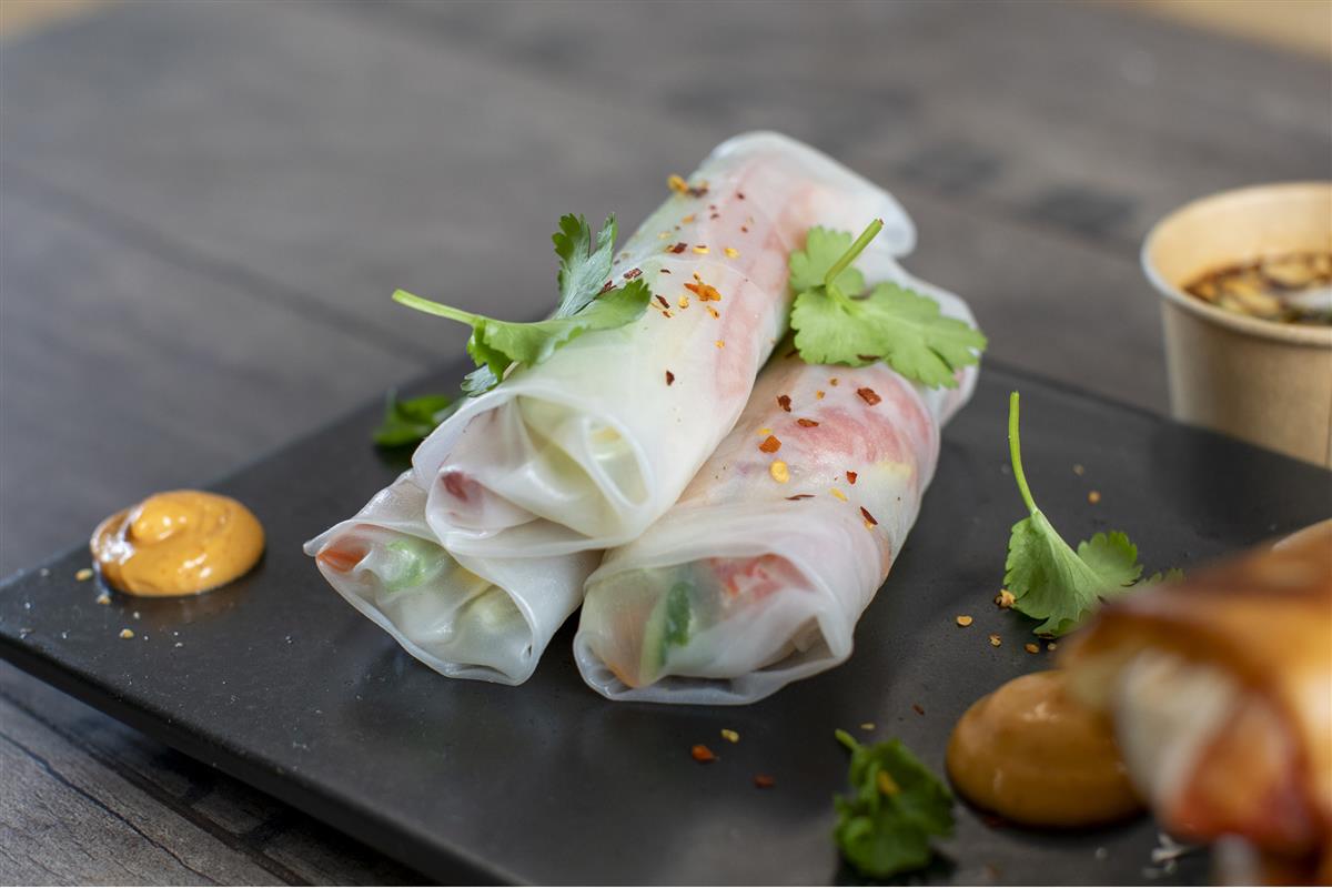 Hold fast om fyldet imens du ruller stramt sammen og folder siderne ind undervejs. Det er samme metode som med almindelige forårsruller.