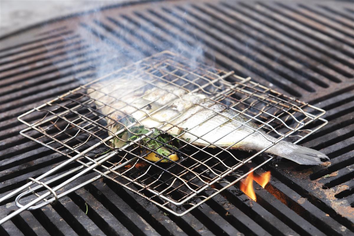 Bed om at få doraderne renset hos fiskehandleren. Alternativ skal de renses grundigt hjemme i køkkenet. Rids skindet på fiskene med en skarp kniv. Gnid dem med salt og peber og fintrevet citronskal. Kom kvarte citronskiver, rosmarinkviste og persille i. Læg fiskene på en varm grill og grill dem i cirka 5-7 minutter på hver side. Kog nogle flotte grønne asparges og server dem til.